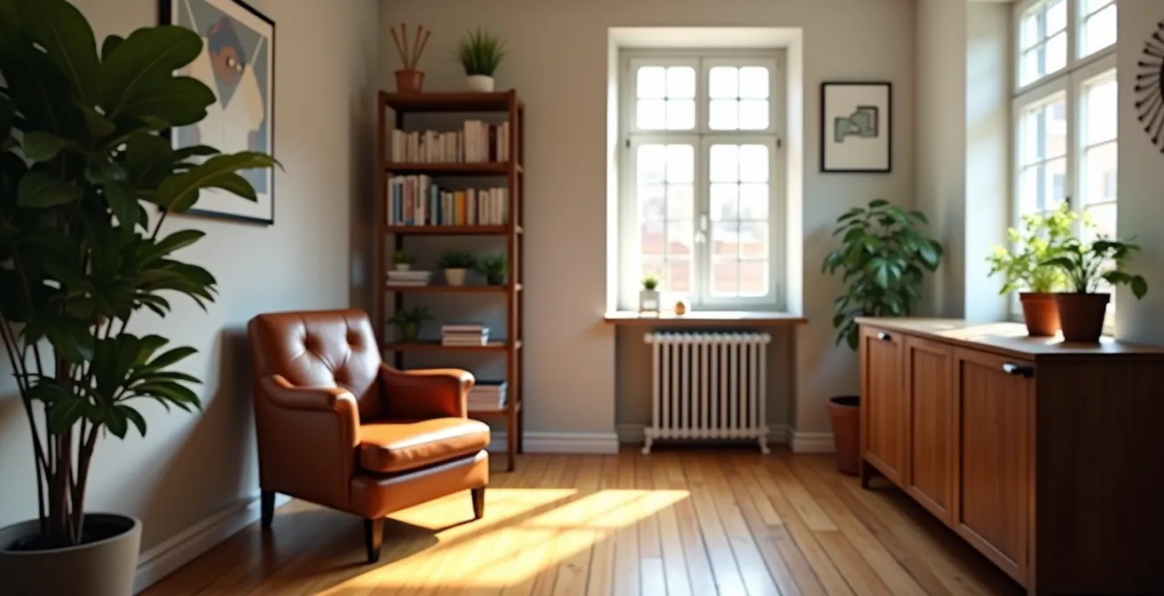 Eine der wirkungsvollsten Techniken, um in einem zweidimensionalen Bild eine dreidimensionale Wirkung zu erzielen, ist die Schaffung von perzeptiver Tiefe. Statt den Raum in seiner Gesamtheit mit einem Weitwinkelobjektiv zu erfassen, lenken Sie den Blick des Betrachters durch mehrere visuelle Ebenen. Kleine, sorgfältig platzierte Objekte im Vordergrund dienen dabei als visuelle Ankerpunkte. Sie geben dem Auge einen Startpunkt und schaffen einen greifbaren Bezugsrahmen, von dem aus der restliche Raum erkundet werden kann. Eine Vase, eine Tasse oder der Rand eines Stuhls, die unscharf in den Bildrand ragen, erzeugen eine natürliche Staffelung und lassen den Abstand zum Hintergrund grösser und den Raum somit weiter erscheinen.